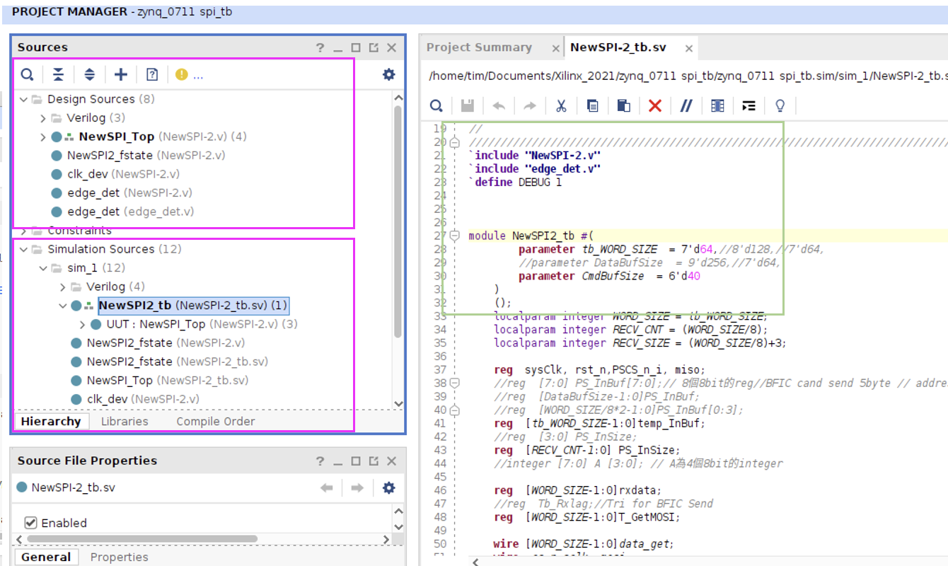 * 我個人比較喜歡將testbench跟合成電路放在自建的額外資料夾，在使用add source分別引入Design source以及simulation，此作法好處是在要複製的時候容易整包帶走，又可以在執行合成電路與模擬的動作區分&#x20;