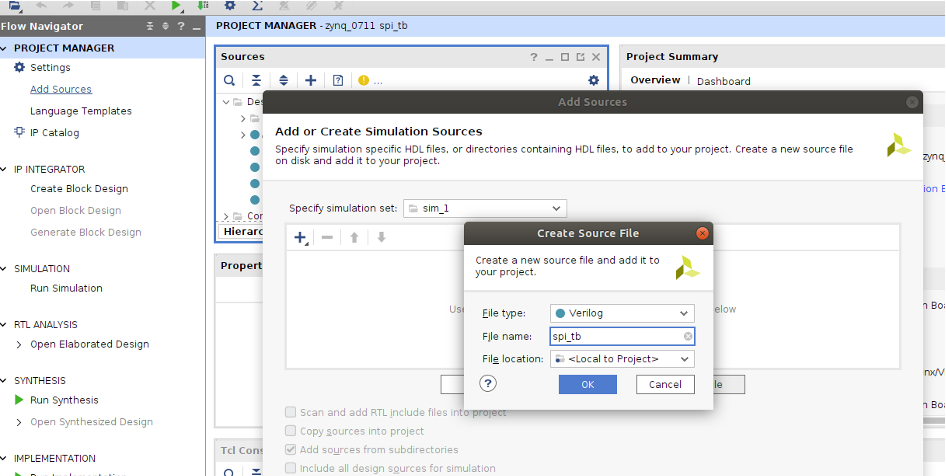 * 注意下圖中add create simulation source與一般的design source標題不同